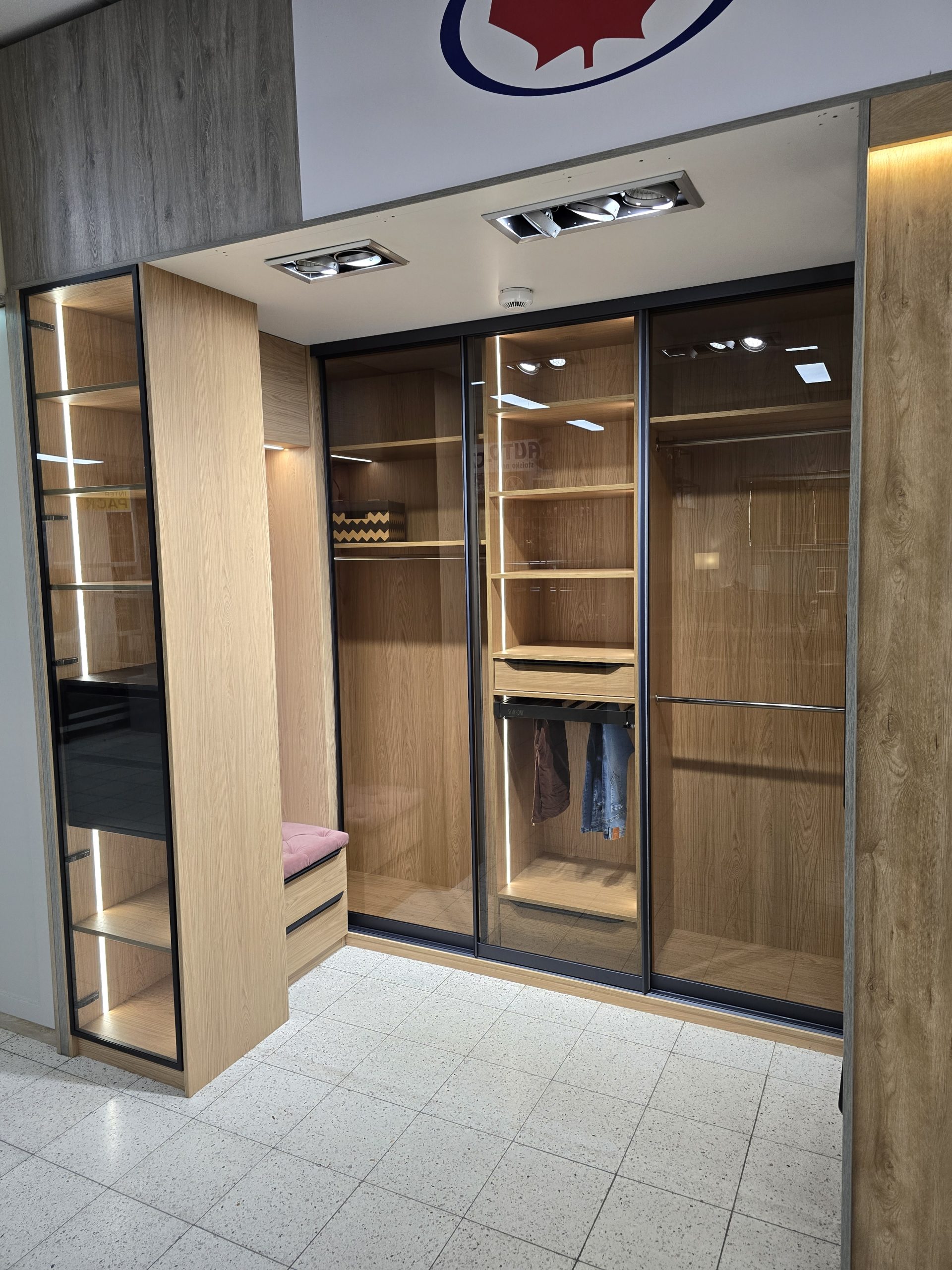 - BEZPIECZEŃSTWO- Elementy wnętrza są trwale mocowane do ściany i stabilne. Drzwi przesuwane wyposażone są w opatentowane mechanizmy zapewniające cichą oraz lekką jazdę zabezpieczając jednocześnie przed wypadnięciem toru. Wszystkie lustra są podklejane folią zabezpieczającą przed odpryskiwaniem
